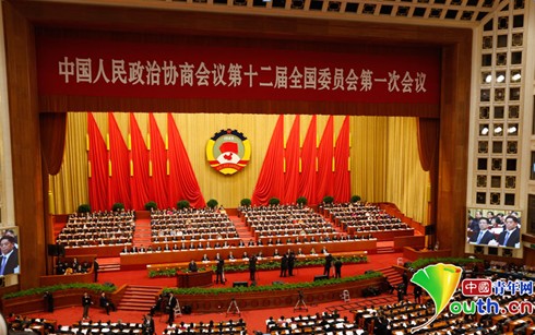 3月3日下午15时,全国政协十二届一次会议在人民大会堂开幕。 中国青年网记者 张炎良摄