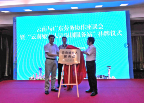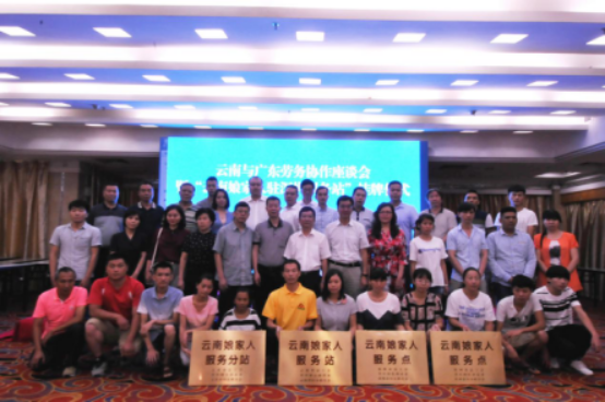 为实现全省农村劳动力向省外转移就业的目标,充分发挥人社部门和群团组织优势,为外出务工人员提供切实有效的服务,近日,云南省人力资源和社会保障厅、云南省总工会、共青团云南省委、云南省妇联在深圳联合召开了云南与广东劳务协作座谈会暨“云南娘家人驻深圳服务站”挂牌仪式。省人社厅副厅长石丽康、共青团云南省委副书记罗永斌、省人民政府驻深圳办事处主任张灿出席会议并讲话。