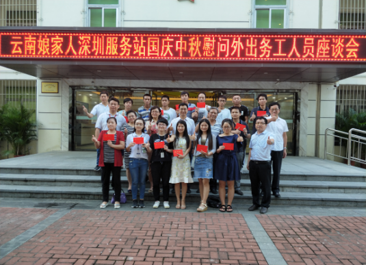 在中国传统节日中秋、国庆来临和党的十九大即将召开之际,为确保滇籍务工人员在外能感受党和政府的关怀,感受到省委省政府和家乡人民的温暖,9月24日至26日,由团省委副书记罗永斌率队,省就业局副局长崔嵬、省妇联权益部部长助理李哲、省人社厅驻深圳站站长王俭、云南娘家人服务站(深圳)站长飞焱和服务站有关同志组成的慰问组赴深圳、东莞等地开展云南娘家人深圳服务站国庆中秋慰问外出务工人员活动。