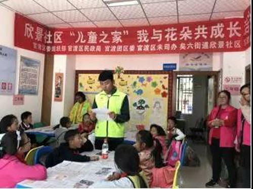 这个由共青团昆明市西山区委与绿砖瓦城乡社区服务中心依托“青乐益站”共同建设的“四点半课堂”,是一个专门为社区里抽调到扶贫一线的扶贫干部子女开办的学习、娱乐场所;“青乐益站”还专门为低龄儿童设立了未成年人服务中心,让父母不在家、由老人看护的幼童来玩耍交流。