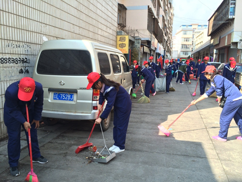3月5日上午10点,校团委共组织了青年教师、学生团员共计52名志愿者参加此次活动。志愿者被分成了两个小组,一组负责龙溪路至泰安路一线的街道、绿化带的卫生清洁工作,二组负责深入到下关镇玉龙村委会进行卫生清洁工作,最后两个小组集中到达下关一中教师公寓进行卫生大扫除。