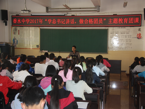 五是香水中学团支部大会暨团干部培训会。一直以来,校团总支都定期召开支部大会,讨论入团积极分子入团问题和学习团章团史,有针对性地对学生的政治思想和道德修养宣传教育。借此契机,5月3日晚17点45-18点45一个小时时间,学校党支部组织委员钱少凯同志从党团史、团员的修养等方面为学生们作宣传教育,通过这样的团支部民主生活会对香水中学的团员意识教育起到了良好的促进教育。同时,团总支书记就各班如何组织班级班队活动和团干部健康成长作了专题发言。