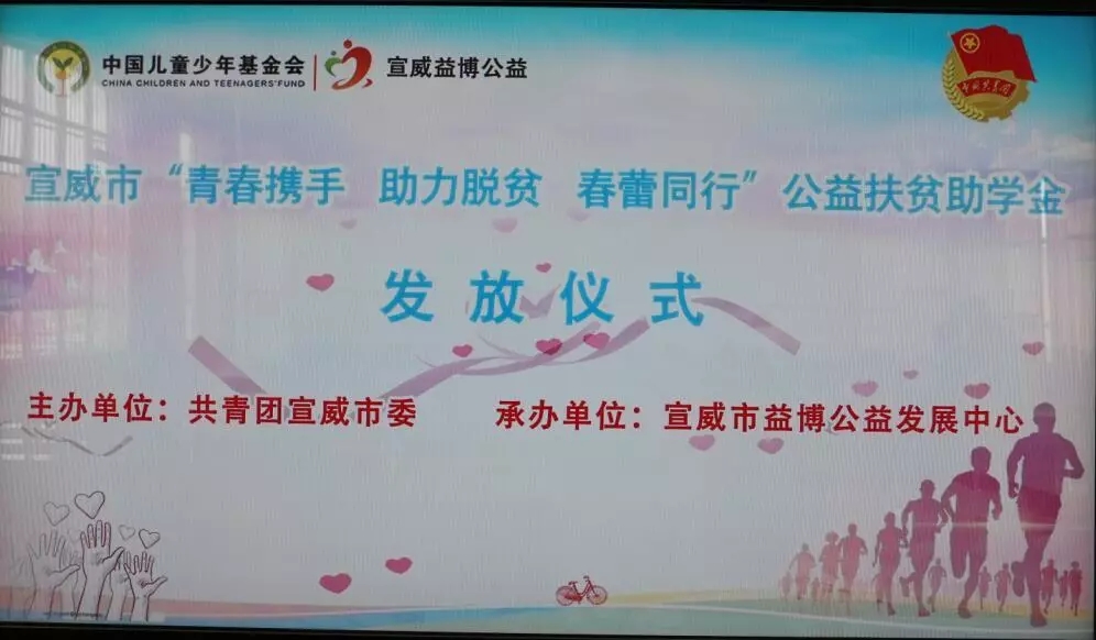 2018年4月11日,由共青团宣威市委主办,宣威市益博公益发展中心承办的“青春携手 助力脱贫 春蕾同行”公益扶贫助学金发放仪式在宣威市第二中学举行。
