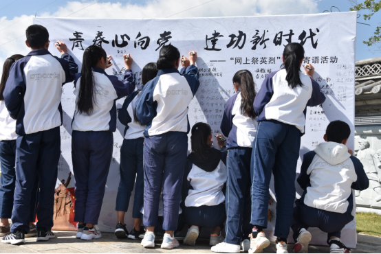 4月4日,大理市喜洲镇二中200余名师生来到大理市烈士陵园革命烈士纪念碑前,参加“青春心向党.建功新时代”特别主题团日活动。活动中,学生代表整理花篮锻带、团员代表苏欣睿进行团旗下的演讲、杨嬿玲同学领誓进行入团宣誓、团员代表前排50名学生在“网上祭英烈”寄语版上签名并写下奋斗目标,大理军分区、州市团委、州市教育体育局、州市退役军人事务局等单位领导还为前排团员佩戴了团徽。缅怀革命先烈的丰功伟绩,发扬革命传统。通过开展活动,同学们增强了为实现伟大“中国梦”而奋斗的坚定决心和坚强信心。