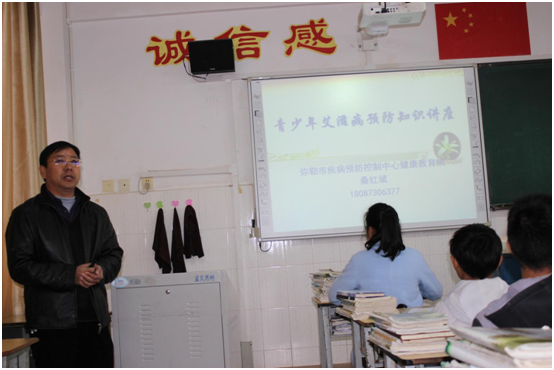 12月1日,弥勒市东风农场管理局团委争取到市疾病预防控制中心和东风卫生院等有关部门的支持,在东风中学开展了以“携手抗艾,重在预防”的主题讲座。讲座从什么是艾滋病,艾滋病的传播途径,如何防治艾滋病几方面进行授课。