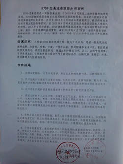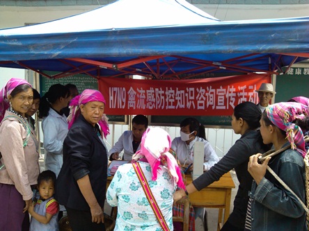 活动内容包括:利用发放宣传资料的方式向城乡广大民众宣传介绍什么是H7N9禽 流感病毒、预防H7N9禽流感的方法和措施、H7N9禽流感感染病例的主要临床表现及目前治疗H7N9禽流感的方法;为现场民众答疑解惑;为民众进行义诊 等。活动现场共向民众发放科普宣传小册子100多份,接受民众的现场咨询250余人次,为村民义务测量血压和诊病50余人次。活动深受城乡广大民众的欢迎。