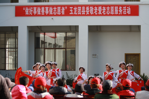 12月24日,玉龙团县委组织全体干部职工、40位玉龙县大学生西部计划志愿者、35位玉龙县职高慰问演出志愿者到玉龙县福利院开展“做好事做善事做志愿者”敬老爱老志愿服务活动,受到了玉龙县福利院全体老人的好评。