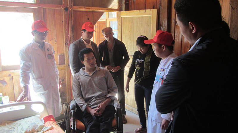 当天,青年志愿者一行来到残疾困难家庭孙加毕家中,详细了解他家的收入来源和康复情况,耐心倾听他在日常生活中碰到的困难,鼓励他自尊、自强、自立,坚定战胜困难的信心,积极主动融入社会,以良好的心态面对生活。团县委还邀请到县医院的医生,为孙家毕测量血压和检查身体,对他进行现场指导理疗康复培训,指导他健康用药,调整心态,积极进行康复训练。同时,团县委还与县民政局、县残联及龙陵县移动分公司一同为孙加毕送去5000元慰问金及价值2000多元的金立手机一部、从3月份开始为期两年每月100元的电话费补助等慰问品。