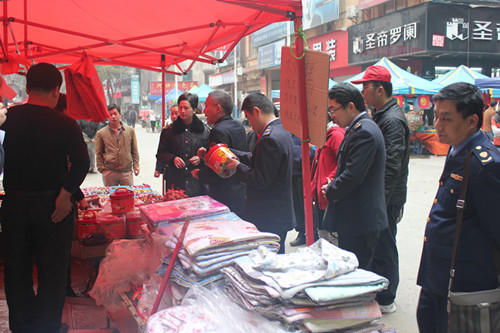 在张桂彬副县长的带领下,检查组先后查看了批发市场、农贸市场、超市、餐厅、食品生产加工等单位,主要检查节日消费较多的粮、肉、油、奶制品、酒、儿童食品、地方土特产品等重点品种的生产加工、销售和货源组织等情况。食品安全志愿者积极配合检查组开展工作,并向各销售食品经营者进行食品安全宣传。