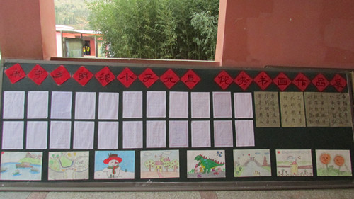 泸西县永宁乡明德小学举办新年画、书法、手抄报、手工作品展