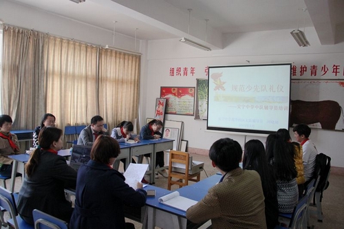 为深入学习宣传贯彻党的十八大和十八届三中、四中全会精神,落实全国少工委六届六次全会部署和安宁市教育局、市少工委中心工作,围绕少先队组织根本任务,培养辅导员职业精神,提高辅导员职业能力,安宁中学于2015年3月26日组织了少先队中队辅导员培训。安宁中学嵩华校区大队辅导员周晓娅老师担任主讲,七年级(校本部)10位中队辅导员参加了培训。
