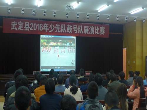 11月25日下午,由共青团武定县委、县教育局、县少工委联合举办的“红领巾相约中国梦——听党的话,做好少年”鼓号队展演比赛在县委七楼会议室隆重举行,来自全县11支少先队鼓号队以视频播放的形式参加了此次展演比赛。县教育局、县关工委、县妇联领导出席了会议,楚雄州少工委委员、州少先队总辅导员、州教育局体卫艺专干王志军老师亲自担任评委。各参赛学校校长、少先队辅导员和11个乡镇团委书记共计50余人参加会议。