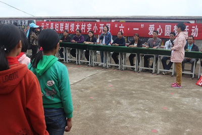 本次活动由坝木小学校长马秋荣主持。马校长指出,社会各界对留守儿童非常关心、关注,全体教师和同学们要不负社会各界的重托,好好学习,天天向上,以优异的成绩报效祖国。接着县妇联领导讲话,她强调,县妇联很关心留守儿童的成长,希望孩子们在父母不在的日子里要学会照顾自己,遵守学校的各种规章制度,学好知识,将来做社会有用的人。接着留守儿童代表发言。在《爱的奉献》歌曲中县妇联的同志们给孩子们有序地发放心愿礼物,通过这次“六一”爱心圆梦活动,同学们感到了温暖,也更坚定了学习信心。