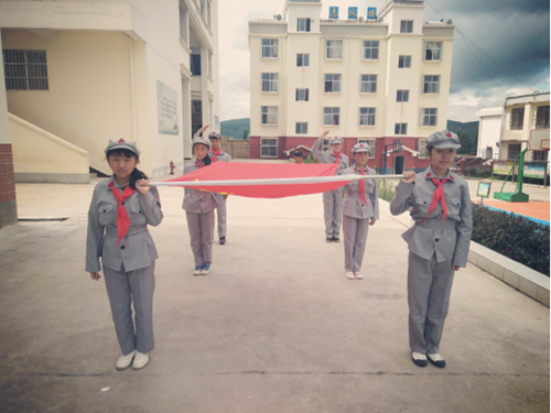 武定县插甸镇红军革命英烈小学2017学年秋季学期开学第一天升旗仪式