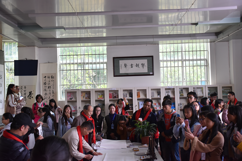 活动期间,学院第十四届书画协会会长吴曦进行了发言。学院书画协会成员以现场书写“中国梦 热院情”刚劲有力的六个大字拉开了序幕。学院领导和嘉宾参观了展出的书画作品,对展出的作品给予了很高的评价,并鼓励同学们不忘初心、继续努力,将个人青春梦想融入实现民族伟大复兴的中国梦。活动现场气氛十分热烈,吸引了大量的同学前来参观交流。活动最后,学院领导、嘉宾老师和学院书画协会全体成员合影留念。