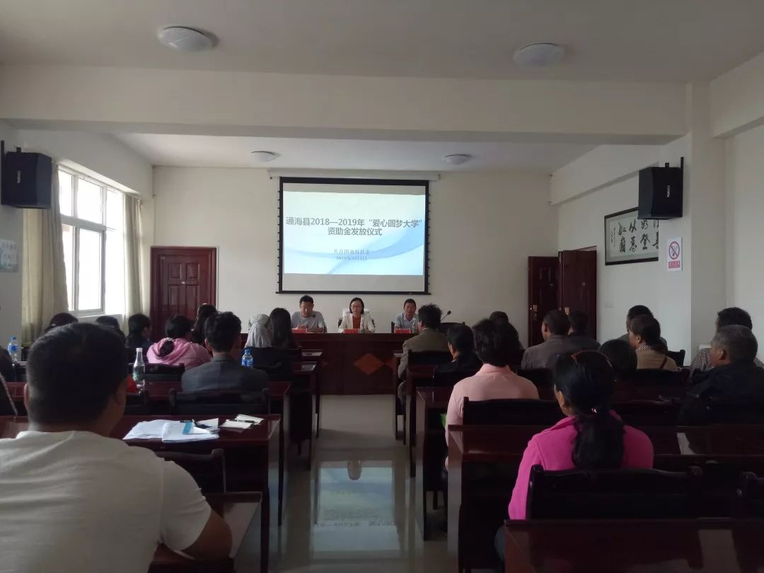 活动中,共青团通海县委副书记孙智超为大家介绍了2018—2019年度团县委“爱心圆梦大学”资助情况,共青团通海县委书记丁玉梅为2019年爱心企业通海锦海农业科技发展有限公司授捐赠牌,感谢爱心企业的善行义举。锦海公司总经理董春富鼓励受助大学生要锐意进取,努力学习,将来回报社会,感恩他人。